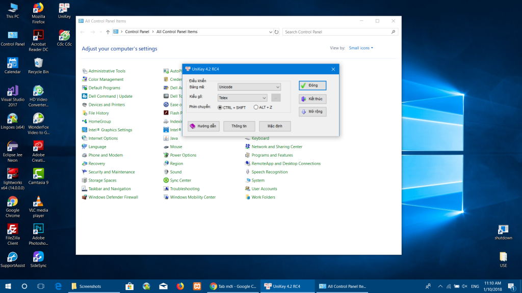 Ví dụ: trên màn hình máy tính mình đang có 2 cửa sổ ứng dụng là Unikey và Control Panel. Khi bạn thực hiện chụp màn hình bằng cách nhấn tổ hợp phím Alt + PrtScr thì chỉ chụp được cửa sổ ứng dụng trên cùng màn hình.