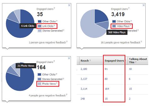 Engagement được tính là số người click, bình luận và chia sẻ và những người có xem video hoặc có click vào liên kết hay hình ảnh bạn post lên. Hay cả khi bạn click vào tên của người bình luận, nhấn like cho một comment, click vào tên Page hay kể cả người đưa negative feedback về cho Facebook bằng cách report nội dung của bạn thì cũng được tính vào chỉ số engagement này.