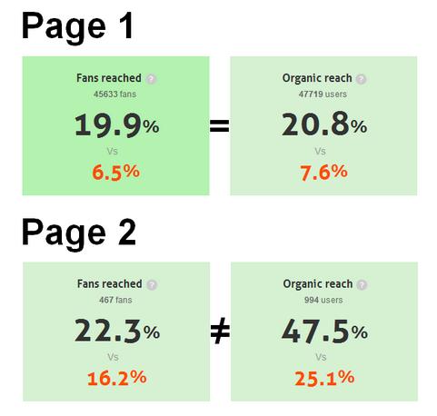 Organic reach có thể thay thế số liệu fan reach trong đo lường, nhưng chỉ khi sự khác biệt xét về trung bình giữa hai số liệu là không quá lớn dựa trên số fan của Page.