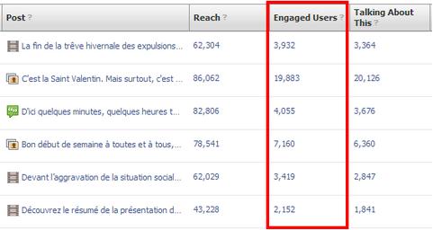 Trong Facebook Insights, bên phải cột số liệu Reach bạn sẽ tìm thấy số liệu về engagement cho mỗi bài viết.