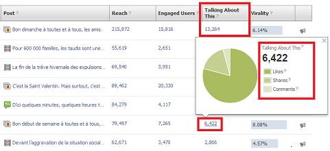 Khi click vào con số “Peolple Talking About This” của mỗi bài post, bạn có thể xem được cụ thể từng hành động trên bài post.