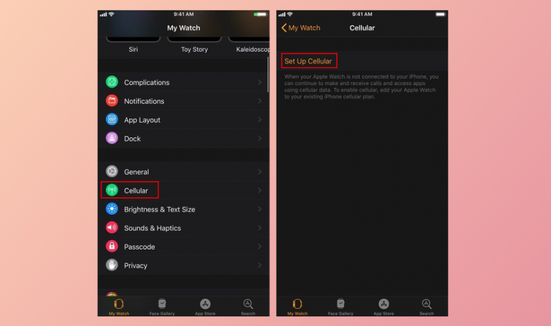 Bước 2: Nhấn chọn vào mục My Watch >> Cellular (Di động) >> Setup Cellular (Thiết lập di động).