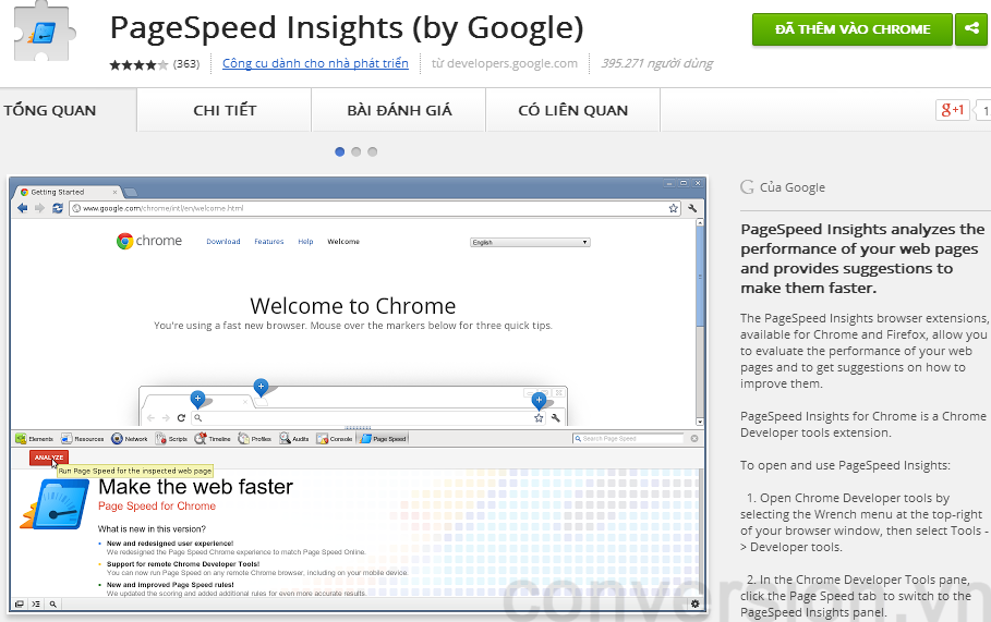 Ứng dụng cho phép người dùng tự phân tích website của mình và tìm ra những gì cần phải tối ưu hóa để có tốc độ load tốt hơn