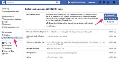 Đăng nhập vào tài khoản Facebook cá nhân. Sau đó, kích chuột vào phần Settings (cài đặt) > Public Posts (bài viết công khai) > Who can follow me (ai có thể theo dõi tôi) > Public (mọi người).