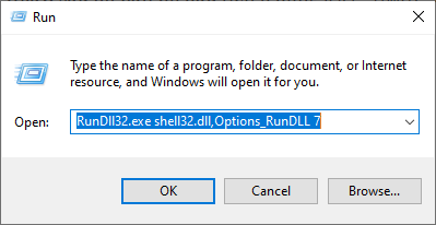 RunDll32.exe shell32.dll,Options_RunDLL 7