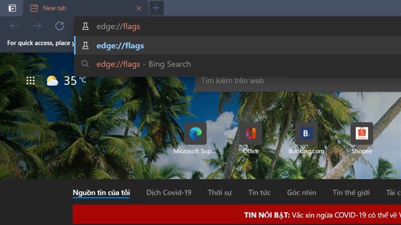 Bước 1: Mở trình duyệt Microsoft Edge của máy tính bạn lên và nhập vào thanh địa chỉ nội dung này edge://flags.