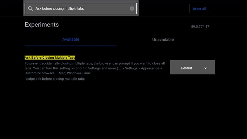 Bước 2: Sau đó bạn tiếp tục nhập từ khóa Ask before closing multiple tabs vào hộp Search flags để hệ thống dẫn bạn đến tính năng này nhé.