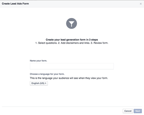 Chọn mục tiêu Lead Generation và tiếp tục quy trình tạo quảng cáo như bạn thường làm. Khi bạn đã mở phần Tạo quảng cáo, bạn sẽ nhìn thấy một mục mới tên là Lead Form – Biểu mẫu thông tin cho Khách hàng tiềm năng.
