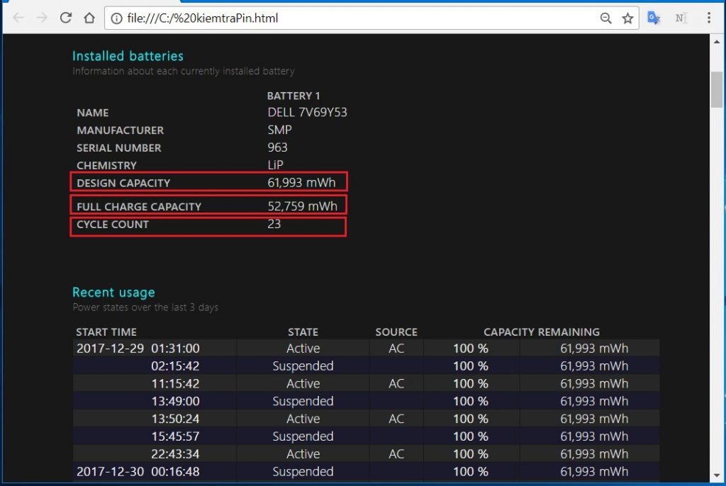powercfg /batteryreport /output "C:\ kiemtraPin.html"