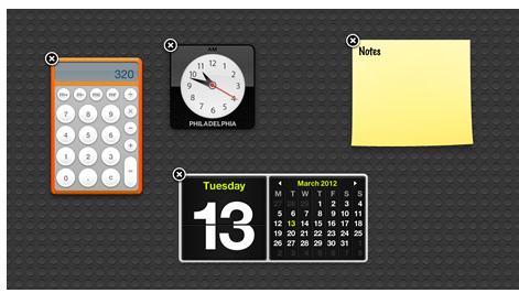 Giao diện OS X dashboard và các widget thêm vào đều cung cấp cho người dùng những thông tin nhanh chóng, dễ dàng. Thật dễ hiểu khi các thiết kế của OS X sử dụng phong cách Skeuomorphic.