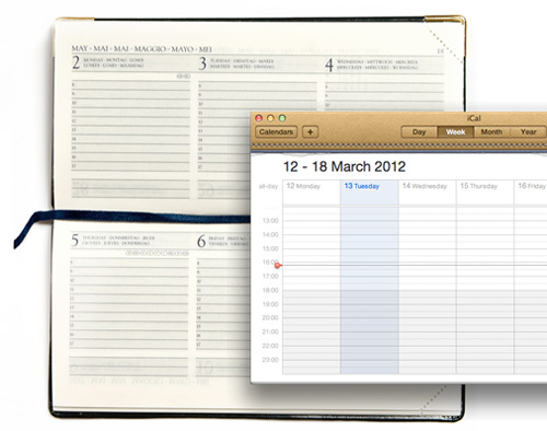 Không nghi ngờ gì, chủ đề được tranh luận và bàn tán về skeuomorphic đang rất HOT thời điểm này. Với việc phát hành OS X Lion, Apple quyết định mang tới cái nhìn và cảm nhận của Calendar trên iPad vào iCal trên máy tính để bàn.