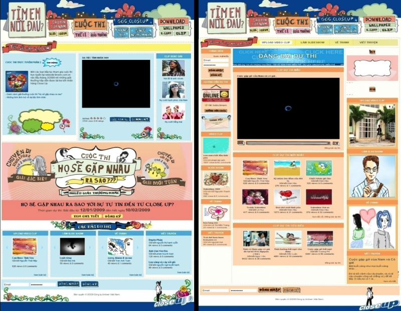 2008: Close Up tìm em nơi đâu là 1 trong những campaign site thành công nhất với kiểu thiết kế vẽ tay mới lạ và những chức năng không đụng hang (làm slideshow, vẽ tranh). Website flash, có chức năng comment, kết bạn, đăng tác phẩm dự thi để tạo thành 1 cộng đồng rất sôi nổi.