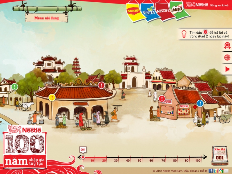 Nestle 100 năm là 1 trong những website kì công và phức tạp nhất. Website tái hiện sự biến đổi của cảnh vật, con người, văn hoá VN qua suốt 100 năm, kèm theo vô số kiến thức và giải thưởng cực kì hấp dẫn. Một website xứng đáng với đẳng cấp của Nestle nhưng hết sức thân thuộc, dễ mến như cái cách Nestle đã “nhập gia tuỳ tục” ở VN suốt 100 năm. Các bạn có thể xem clip về website ở dưới
